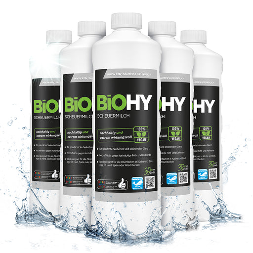 Il nostro latte abrasivo BiOHY 100% vegano pulisce efficacemente e delicatamente lavelli, pentole e stoviglie in acciaio inossidabile, metallo, vet...