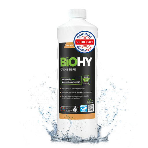 Il nostro detergente per WC BiOHY altamente efficace può essere utilizzato universalmente in tutta l'area sanitaria. Il concentrato sostenibile ade...