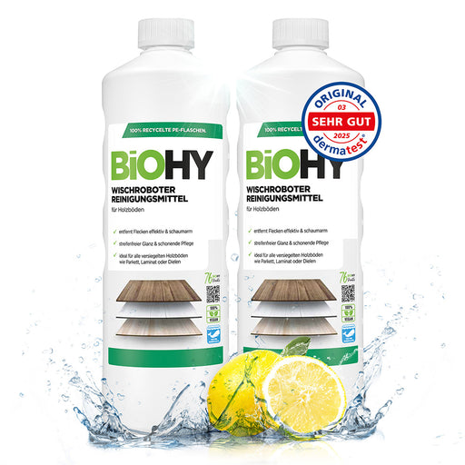 Il nostro detergente per pavimenti BiOHY 100% vegano per robot di pulizia è perfetto per la pulizia affidabile di tutti i pavimenti duri resistenti...