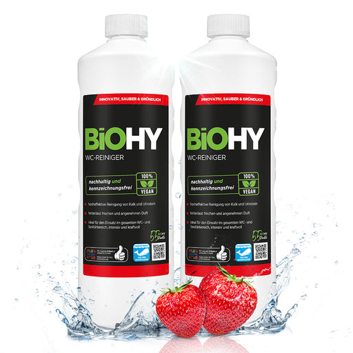 Il nostro detergente per WC BiOHY altamente efficace può essere utilizzato universalmente in tutta l'area sanitaria. Il concentrato sostenibile ade...
