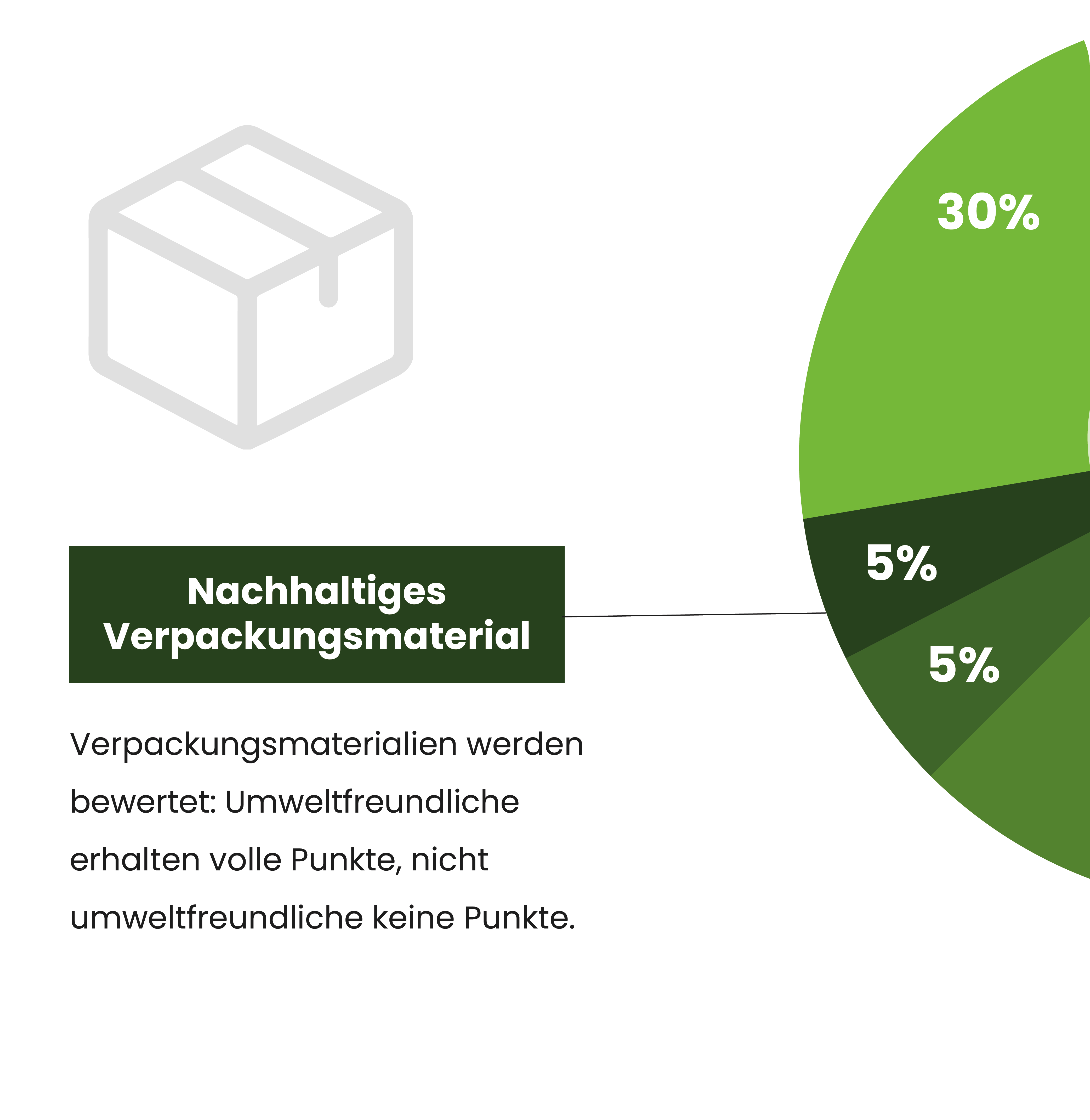 Produkte, die in recycelbaren oder biologisch abbaubaren Verpackungen kommen, erhalten die volle Punktzahl. Recycelbare Verpackungen tragen dazu bei, den Abfall zu reduzieren, indem sie im Recyclingprozess zurück in den Produktionskreislauf geführt werden können. Biologisch abbaubare Verpackungen bieten den Vorteil, dass sie nach ihrer Nutzung ohne langfristige Umweltbelastung abgebaut werden. Beide Optionen helfen dabei, die Umweltbelastung durch Verpackungsabfälle zu minimieren und fördern eine nachhaltigere Abfallwirtschaft.