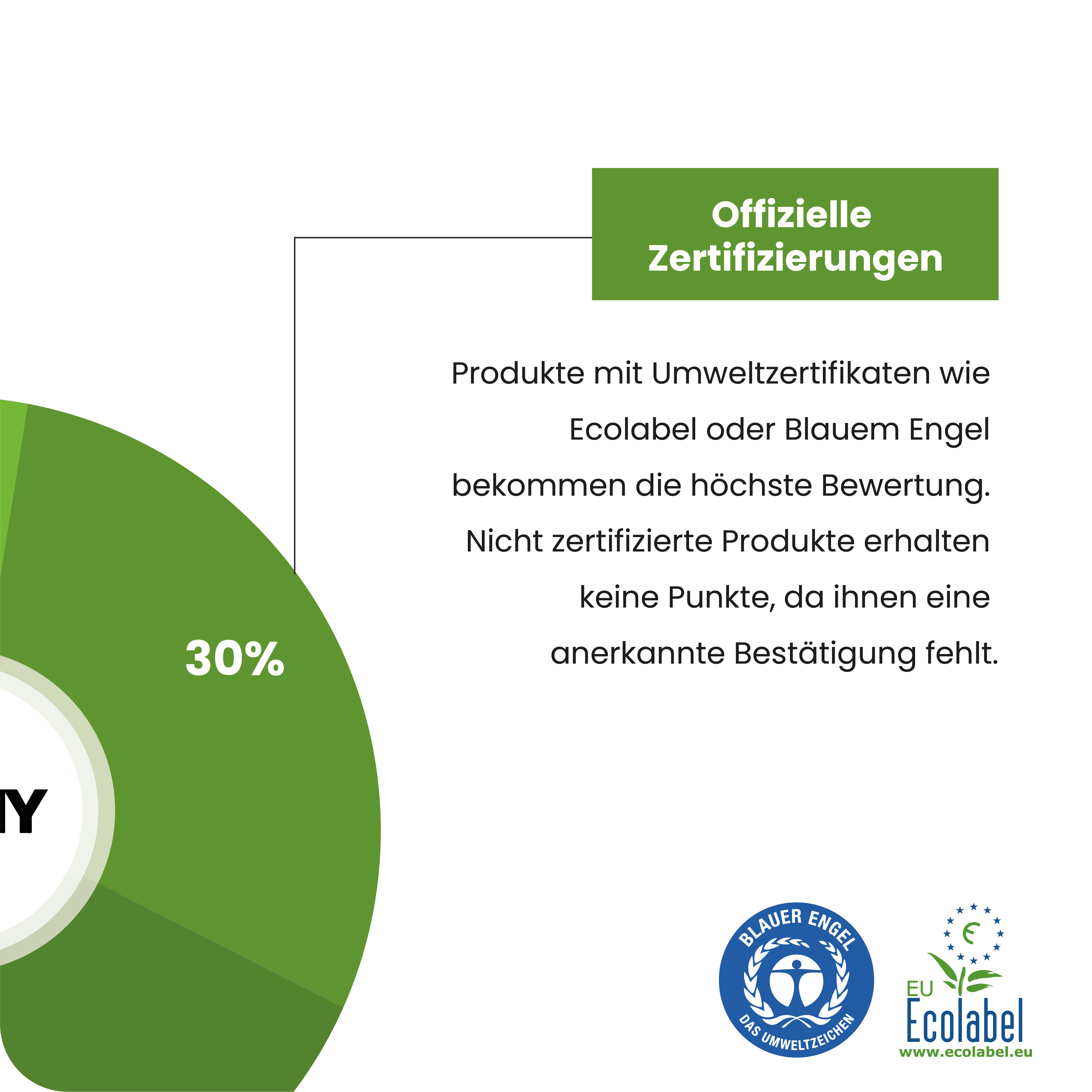 Zertifiziert (z.B. mit Ecolabel oder Blauem Engel) = 100 Punkte: