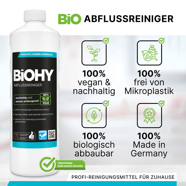 Wir lassen Deinen Abfluss wieder durchatmen. Unser hocheffektiver Abflussreiniger löst Verstopfungen durch Haare und sonstige Verschmutzungen zuverlässig und blitzschnell.