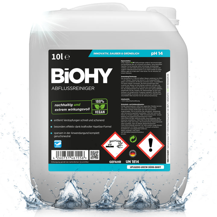 Unser Abflussreiniger entfernt Haare und hartnäckige Verschmutzungen im Handumdrehen und beseitigt dabei selbst festsitzende Gerüche. Für die Anwendung das Konzentrat ca. 5 %ig mit heißem Wasser verdünnen (ca. 50ml / 1 Liter Wasser). Danach das Gemisch in die Ausgussöffnung geben und mindestens 30 Minuten einwirken lassen. Anschließend mit klarem Wasser nachspülen. Genauere Hinweise zur Anwendung und Dosierung findest Du hier. (Verlinkung)