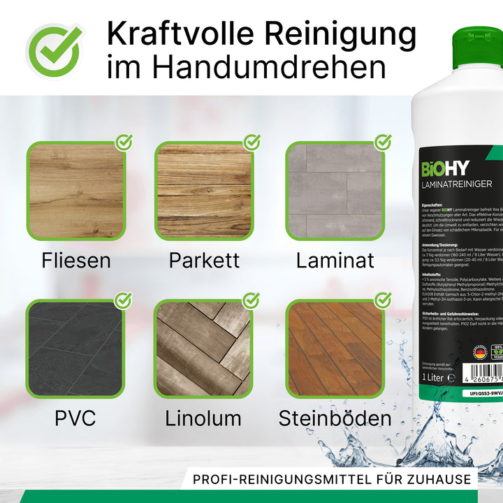 Detergente per laminato BiOHY, cura del laminato, detergente per vinile, prodotto per la cura del laminato